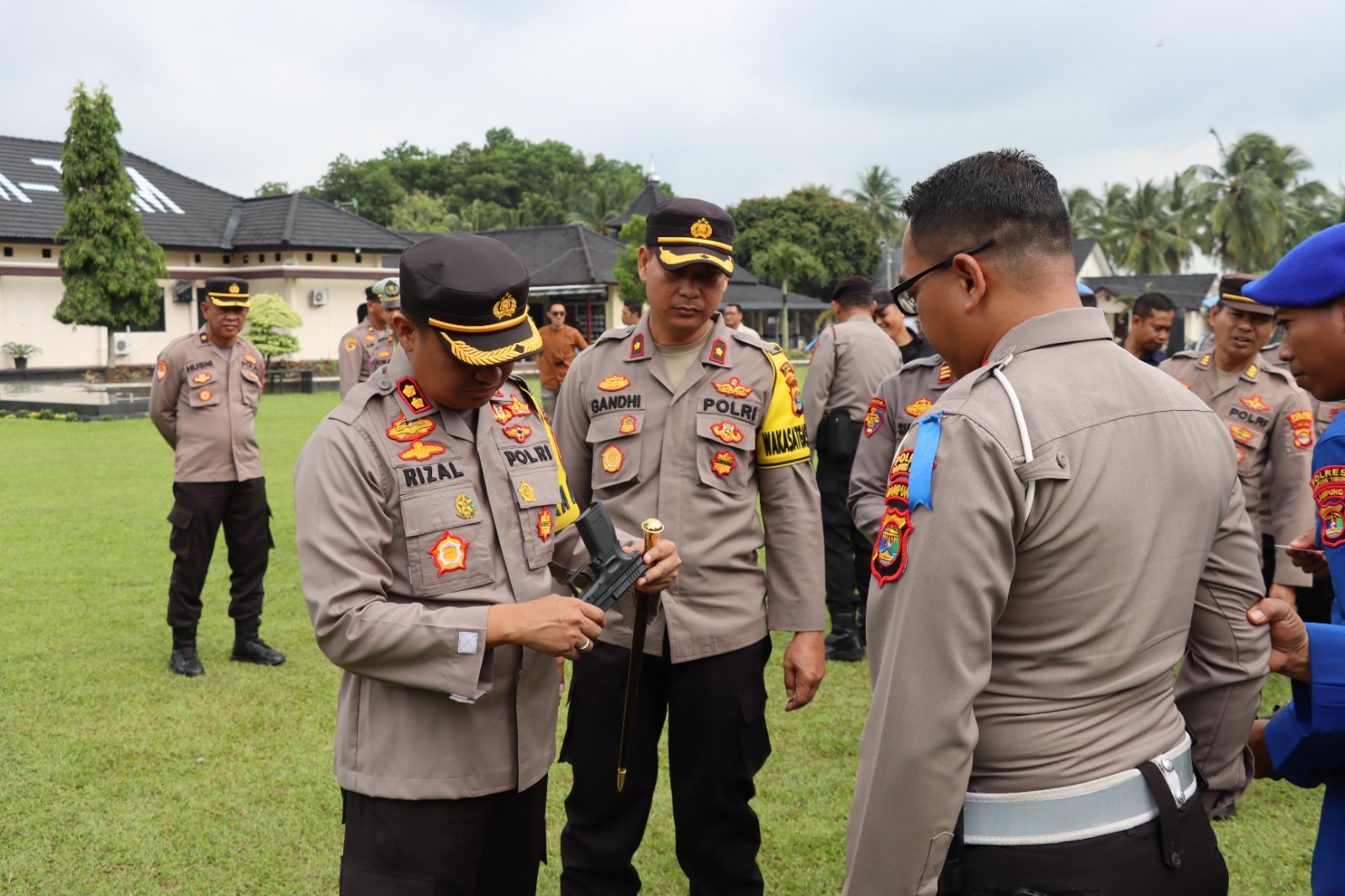 Dipimpin langsung oleh Kapolres Lampung Timur AKBP M. Rizal Muchtar, didampingi oleh Waka Polres Lampung Timur dan seluruh pejabat utama Polres Lampung Timur, melakukan pemeriksaan satu per satu seluruh kendaraan Dinas R-2, R-4 dan senpi.
