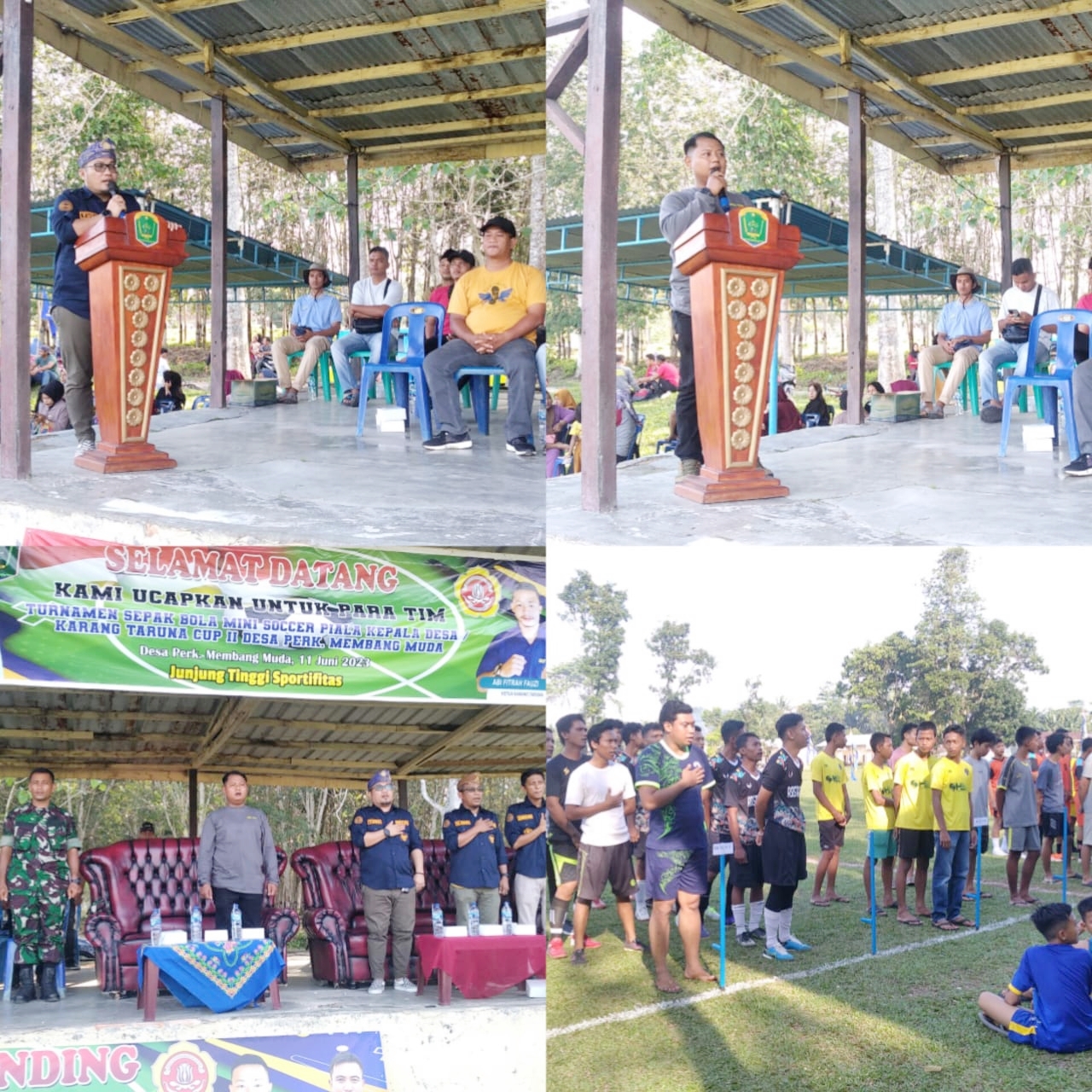 “Selamat bertanding dan junjung tinggi sportivitas, Intinya olah raga untuk menjaga diri agar sehat selain itu dapat menjauhkan generasi muda dari bahaya narkoba, Ucap manager PTPN III Membang Muda Eko Susanto Melalui Ruswandi (Perwakilan) saat sambutan.