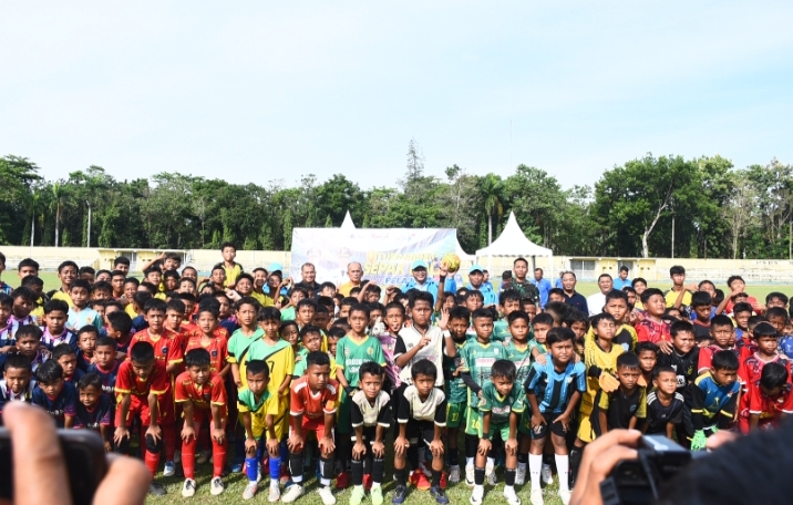 Foto : Bupati Deli Serdang, dr H Asri Ludin Tambunan membuka Turnamen Sepak Bola Pelajar U-11, U-13, dan U-15