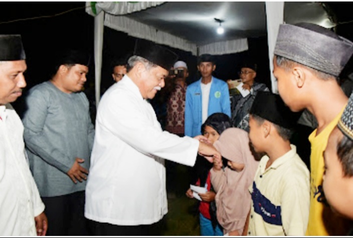 Wakil Bupati (Wabup) Deli Serdang, HM Ali Yusuf Siregar menyerahkan tali asih kepada anak yatim dan piatu pada peringatan Isra’ Mi’raj Nabi Muhammad SAW 1444 Hijriah/2023 Masehi di Lapangan Sepakbola Dusun II, Desa Jaharun A, Kecamatan Galang, Sabtu malam (25/2/2023).