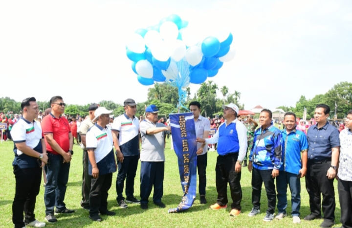 Wakil Bupati Deli Serdang, HM Ali Yusuf Siregar membuka Pekan Olahraga Desa (Pordes) ke-II Tahun 2023 Desa Patumbak I di Lapangan Pagar Jati, Desa Patumbak I, Kecamatan Patumbak, Minggu (30/7/2023).